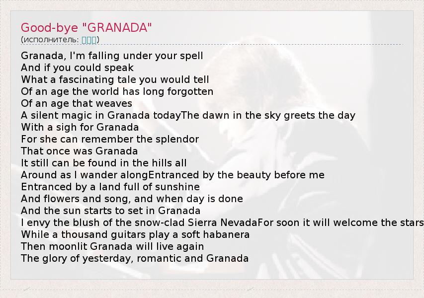А как ты думаешь, о чем песня "Good-bye "GRANADA"" ?