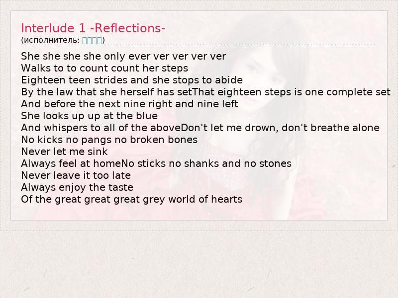 А как ты думаешь, о чем песня "Interlude 1 -Reflections-" ?