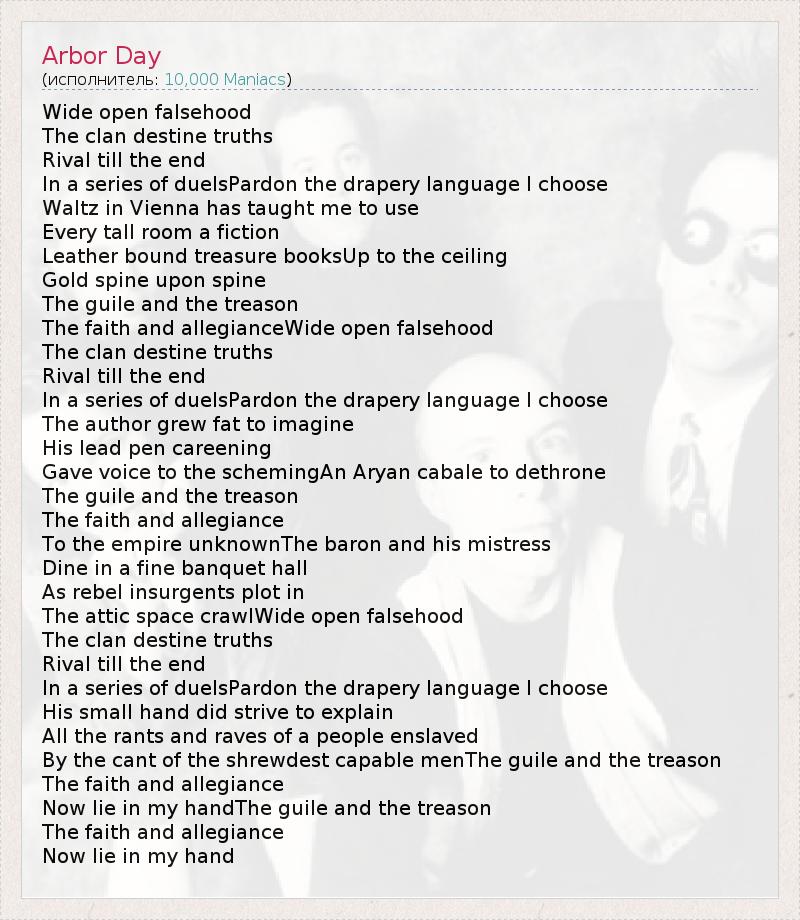 А как ты думаешь, о чем песня "Arbor Day" ?