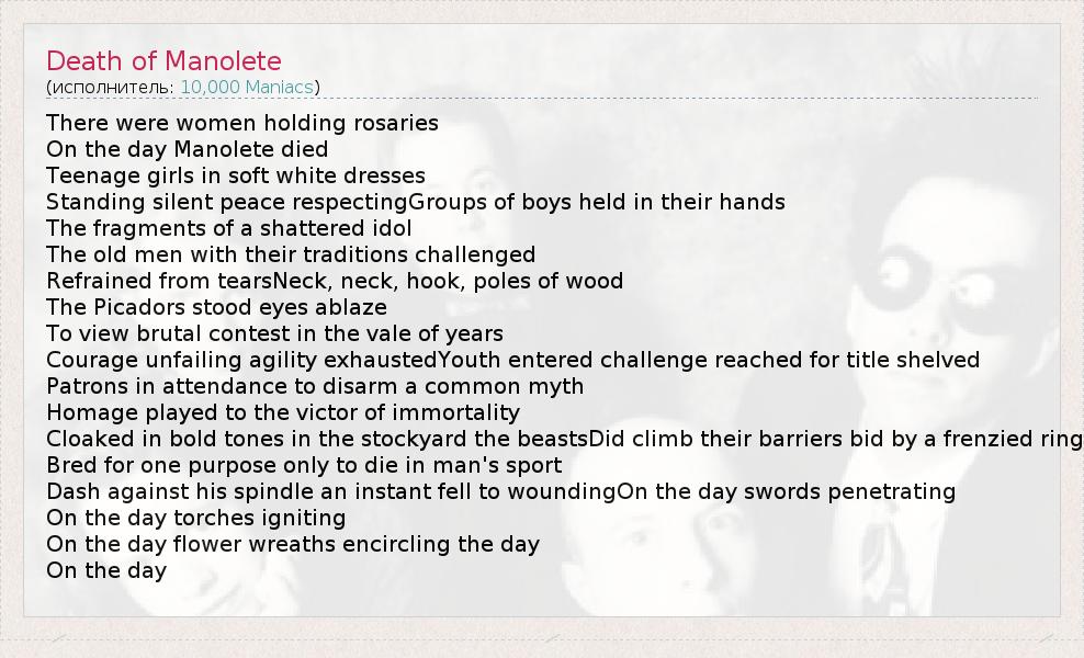 А как ты думаешь, о чем песня "Death of Manolete" ?