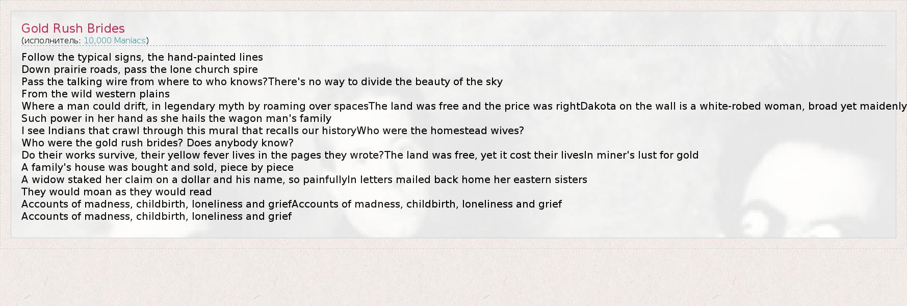 А как ты думаешь, о чем песня "Gold Rush Brides" ?