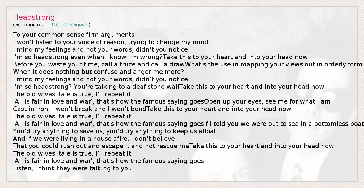 А как ты думаешь, о чем песня "Headstrong" ?