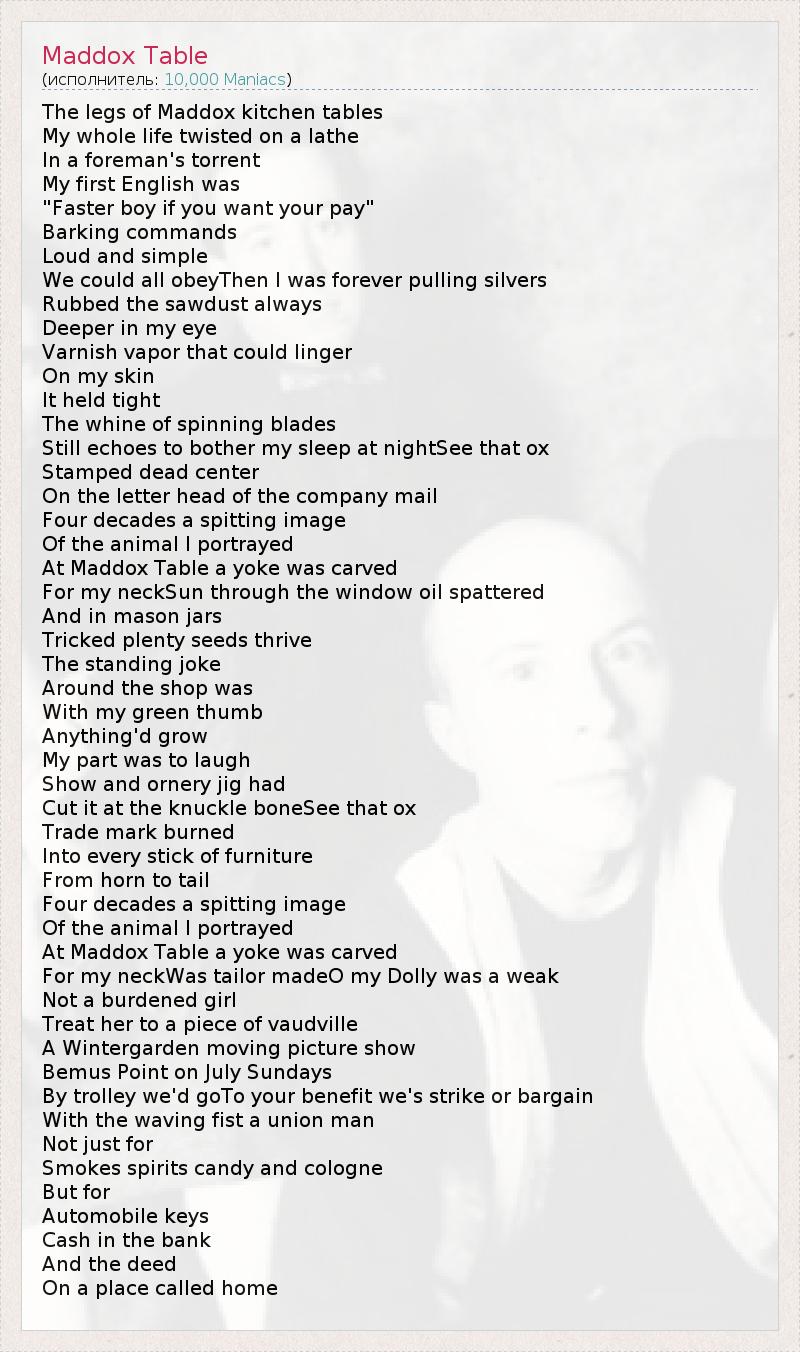 А как ты думаешь, о чем песня "Maddox Table" ?