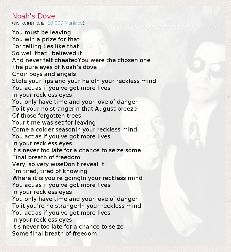 А как ты думаешь, о чем песня "Noah's Dove" ?