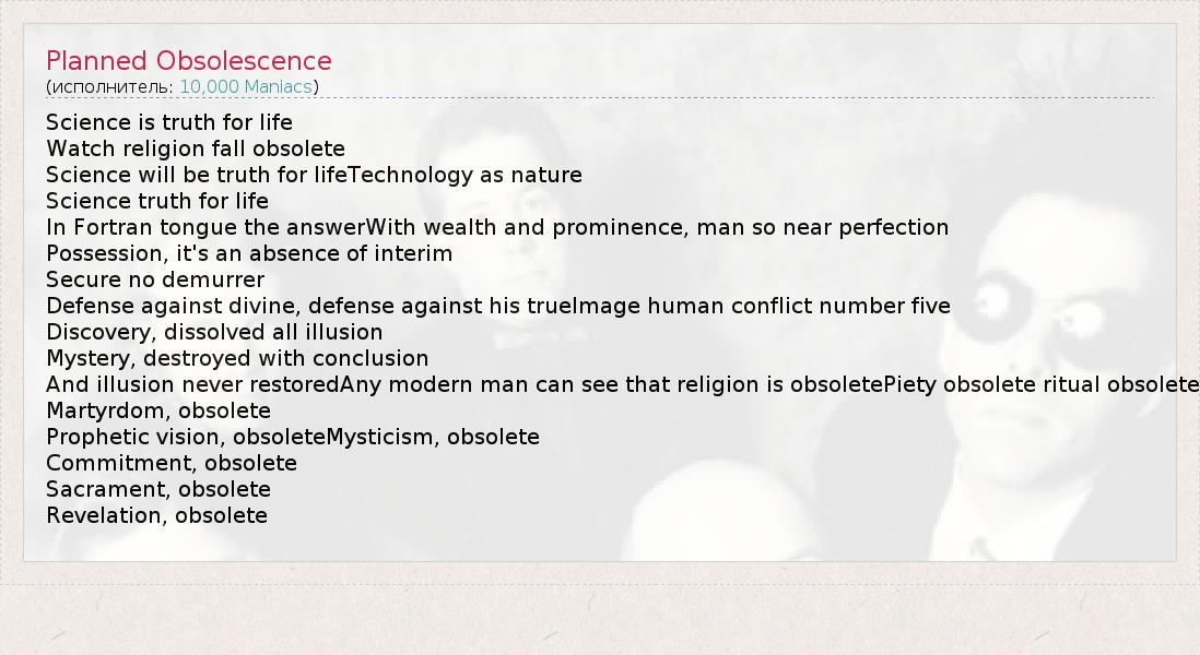 А как ты думаешь, о чем песня "Planned Obsolescence" ?
