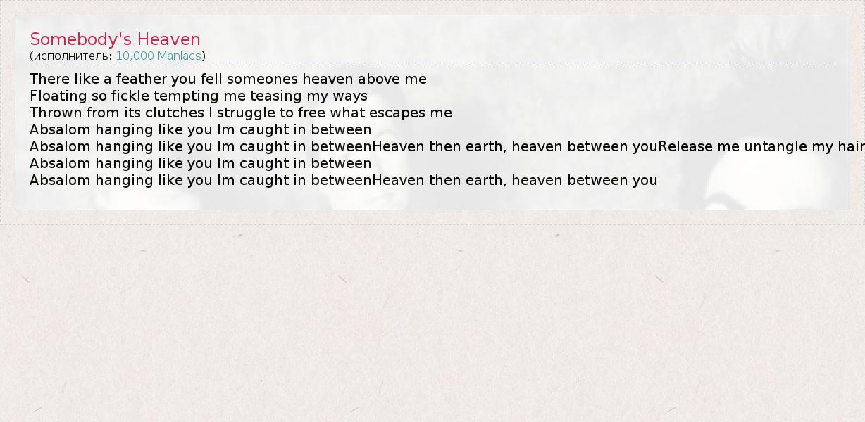 А как ты думаешь, о чем песня "Somebody's Heaven" ?
