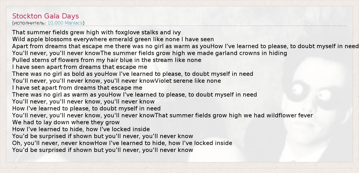 А как ты думаешь, о чем песня "Stockton Gala Days" ?