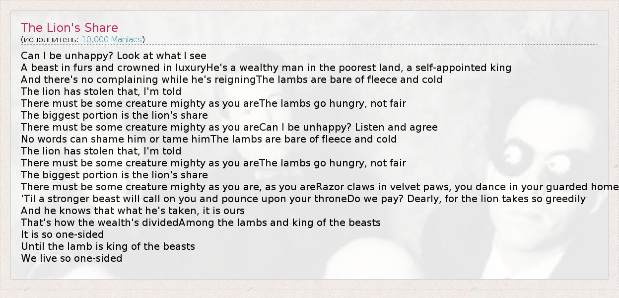 А как ты думаешь, о чем песня "The Lion's Share" ?