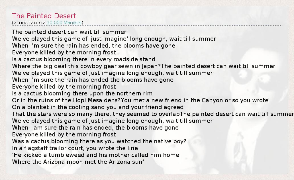 А как ты думаешь, о чем песня "The Painted Desert" ?