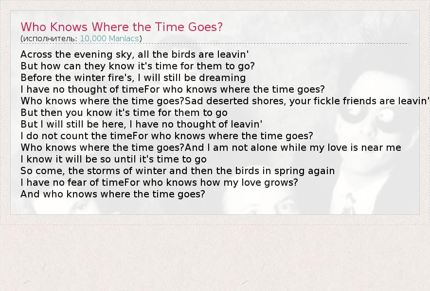 А как ты думаешь, о чем песня "Who Knows Where the Time Goes?" ?