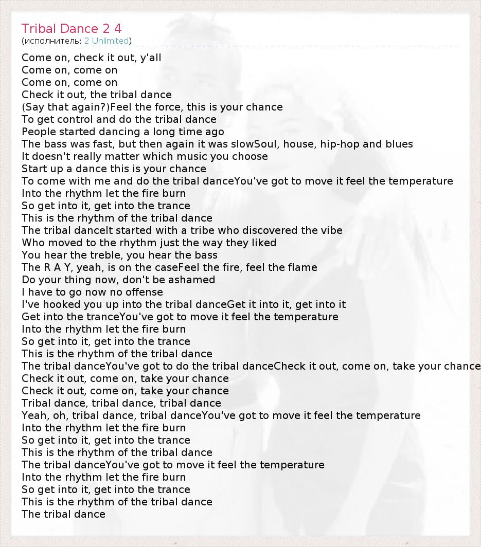 The tribal danceYou've got to do the tribal danceCheck it out, come on, take your chance