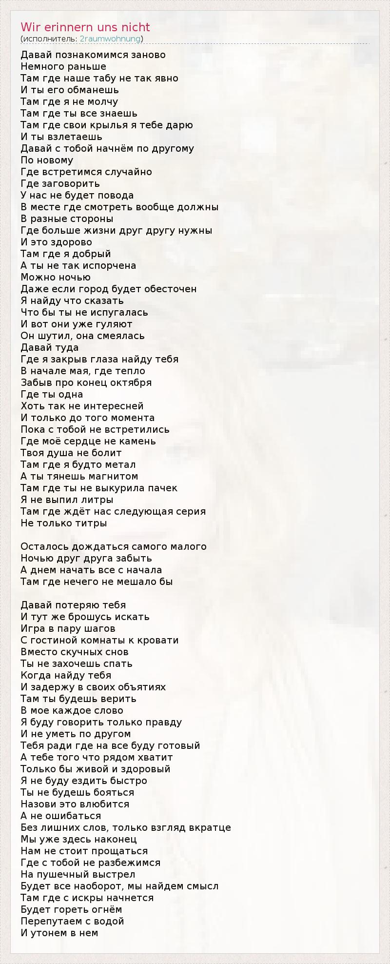А как ты думаешь, о чем песня "Wir erinnern uns nicht" ?