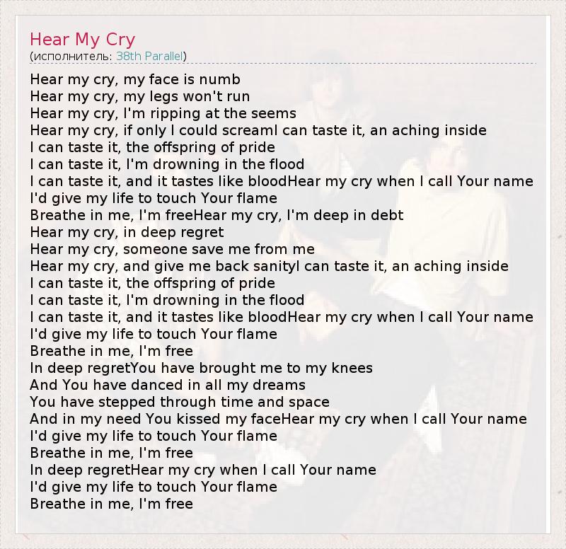 А как ты думаешь, о чем песня "Hear My Cry" ?