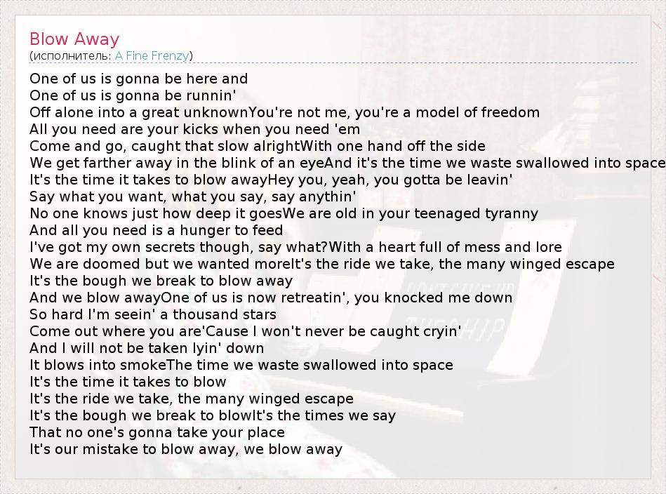 It's the time it takes to blow awayHey you, yeah, you gotta be leavin'