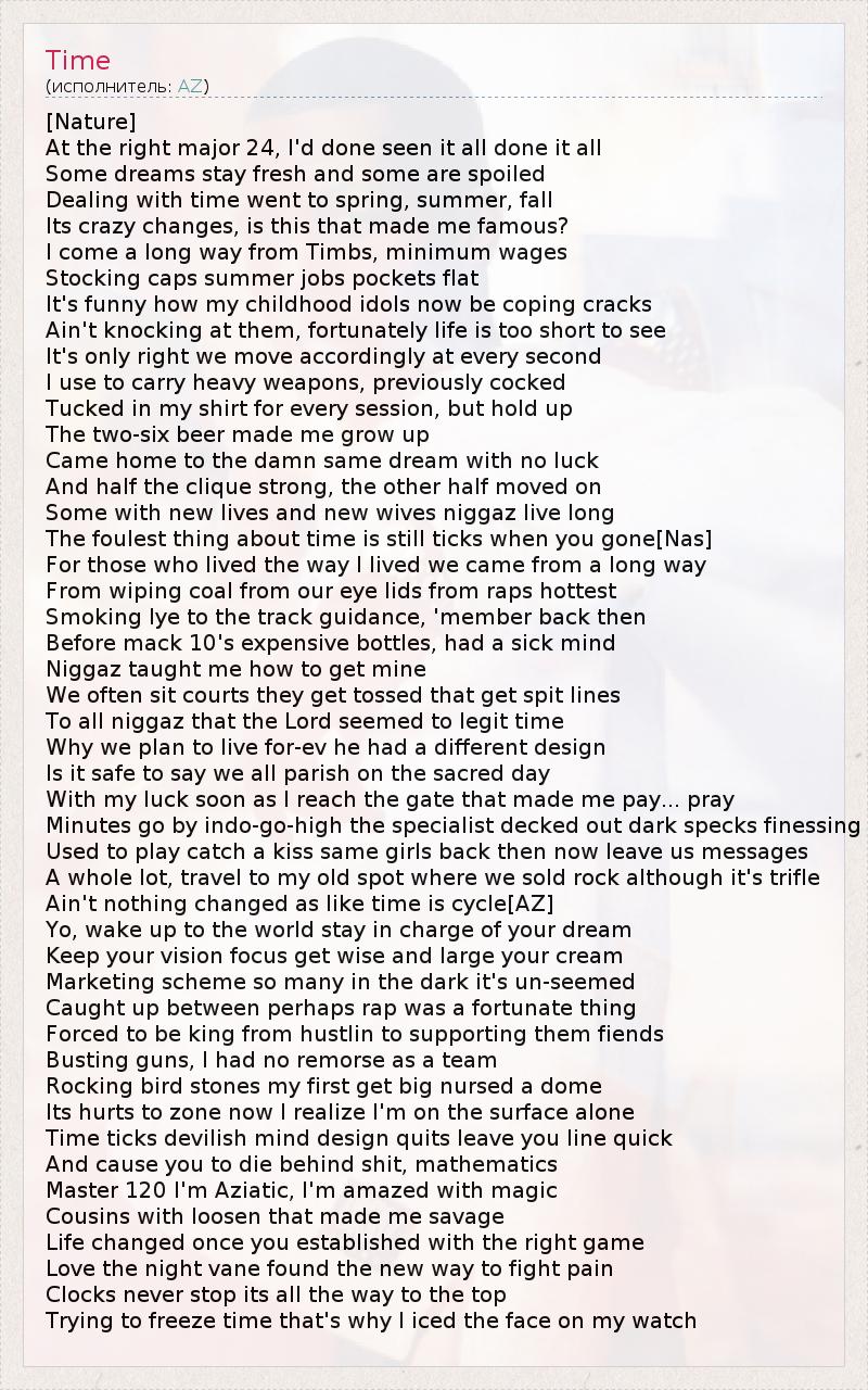 Это интересно:AZ (настоящее имя Энтони Круз, родился 9 марта 1973 года в Бруклине, Нью-Йорк) - рэппер с африканскими и доминиканскими корнями, номинант на Грэмми, представляет East Coast сцену. Изначально был известен как "AZ The Visualiza", достаточно популярный рэп исполнитель, но никогда не был в мейнстриме.Впервые AZ был замечен в 1994 году на альбоме Nasа "Illmatic", в композиции под названием "Lifes a Bitch".... продолжение
