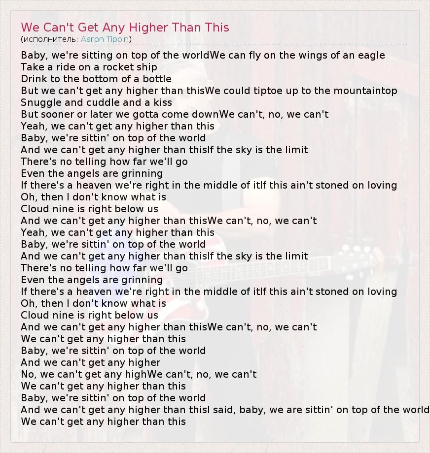 А как ты думаешь, о чем песня "We Can't Get Any Higher Than This" ?