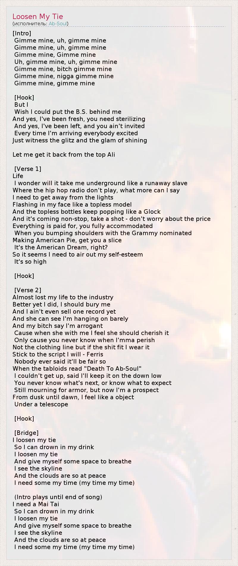 А как ты думаешь, о чем песня "Loosen My Tie" ?
