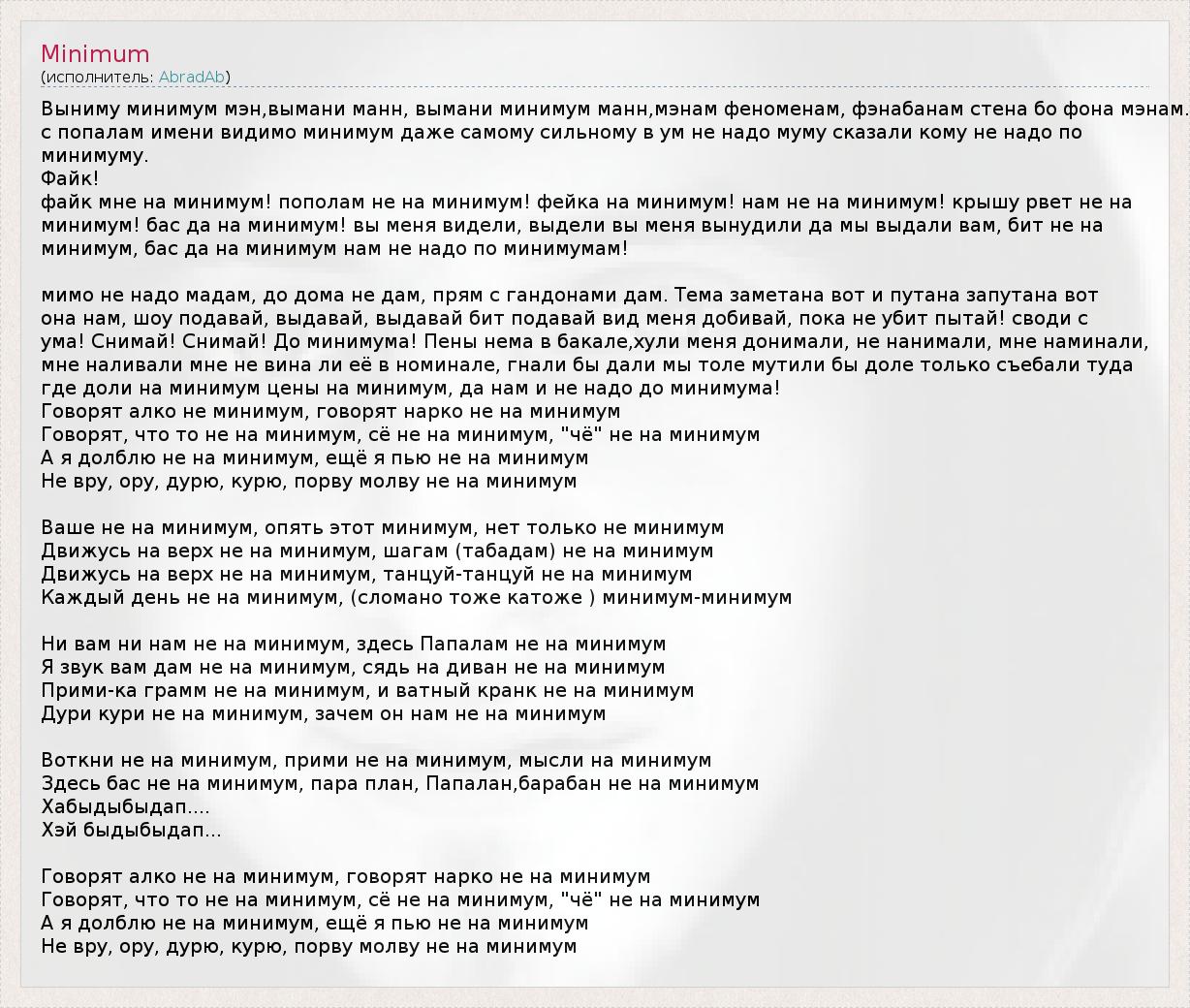 файк мне на минимум! пополам не на минимум! фейка на минимум! нам не на минимум! крышу рвет не на