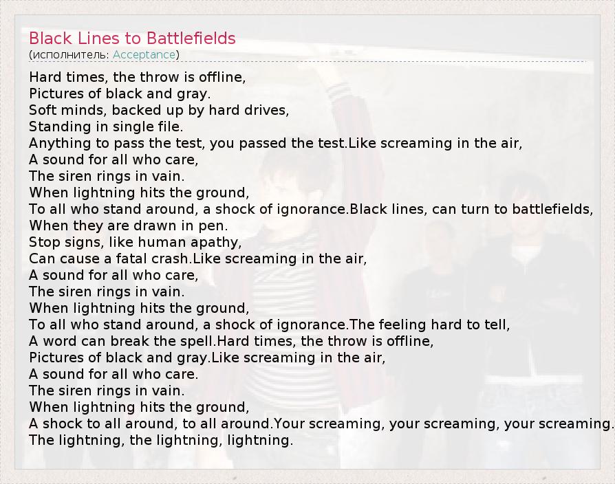 ГлавнаяИсполнителиAcceptanceBlack Lines to Battlefields