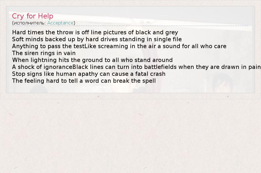 А как ты думаешь, о чем песня "Cry for Help" ?