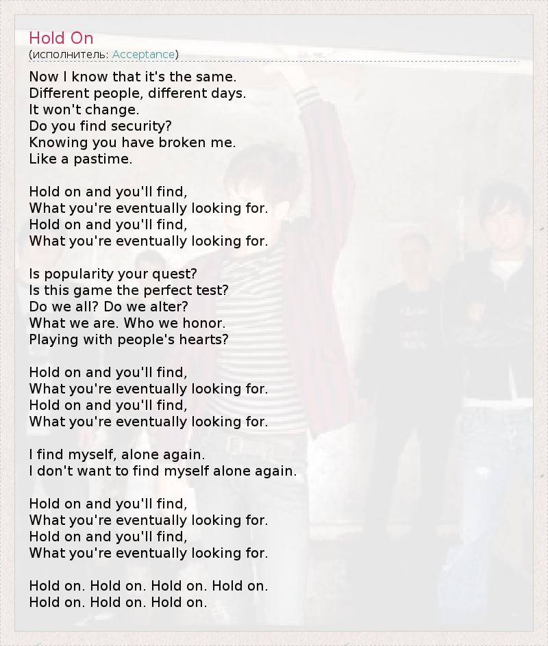 Это интересно:Acceptance - альтернативная рок-группа, образованная в Сиэтле в 1998 году. Их первый EP "Lost for Words" вышел в 2000 году, следующий - "Black Lines to Battlefields" - в 2003. Последняя пластинка "Phantoms" датирована 2005 годом.