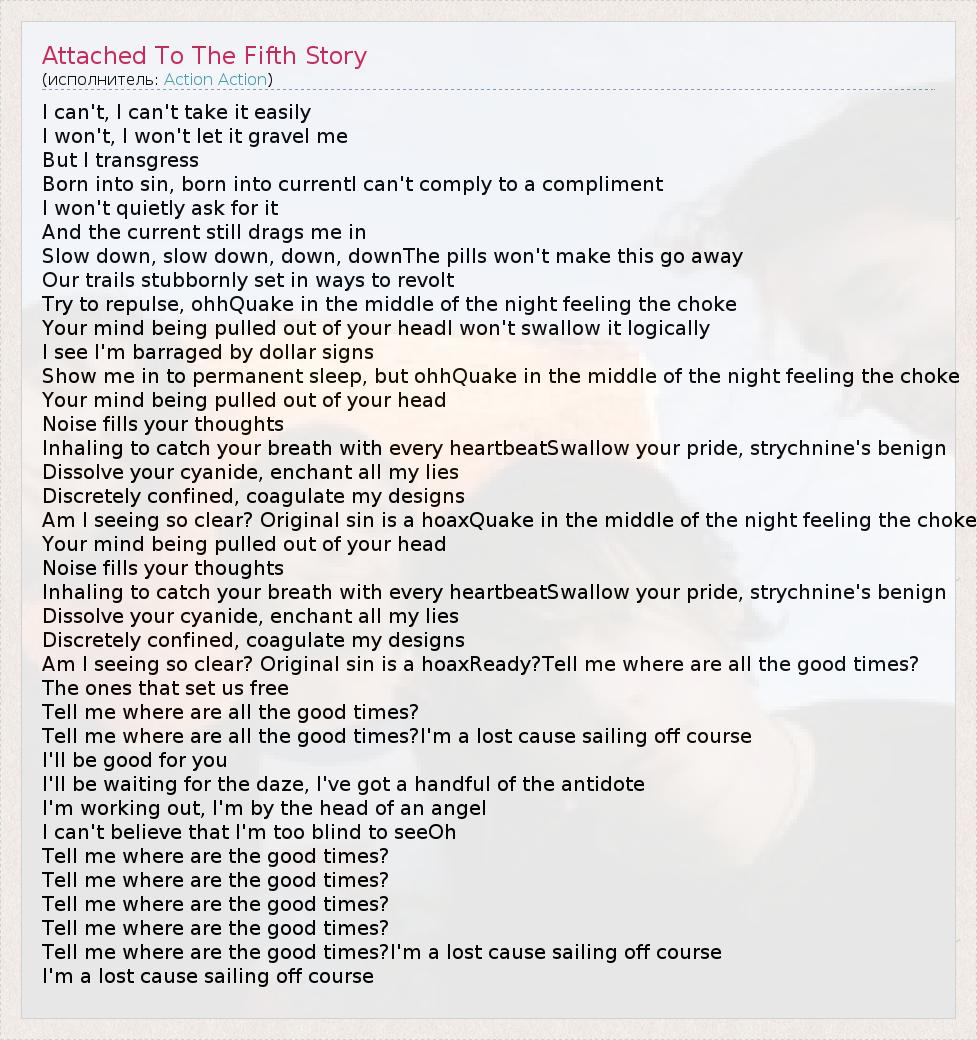 А как ты думаешь, о чем песня "Attached To The Fifth Story" ?