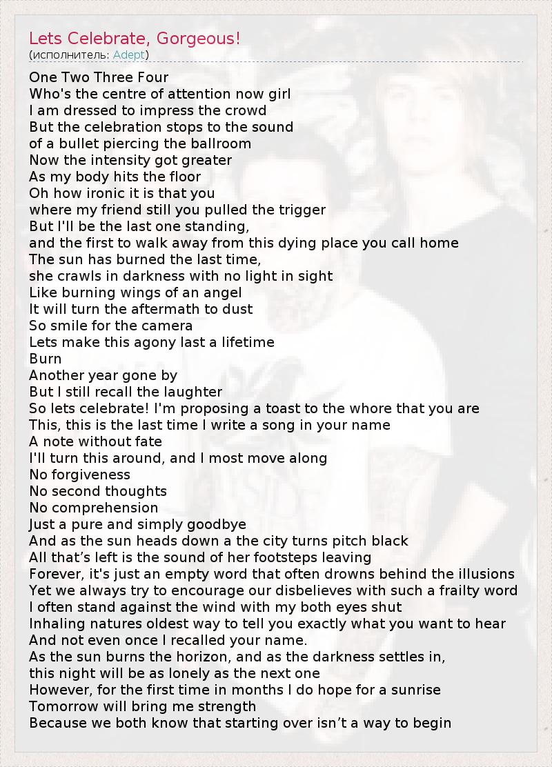 А как ты думаешь, о чем песня "Lets Celebrate, Gorgeous!" ?