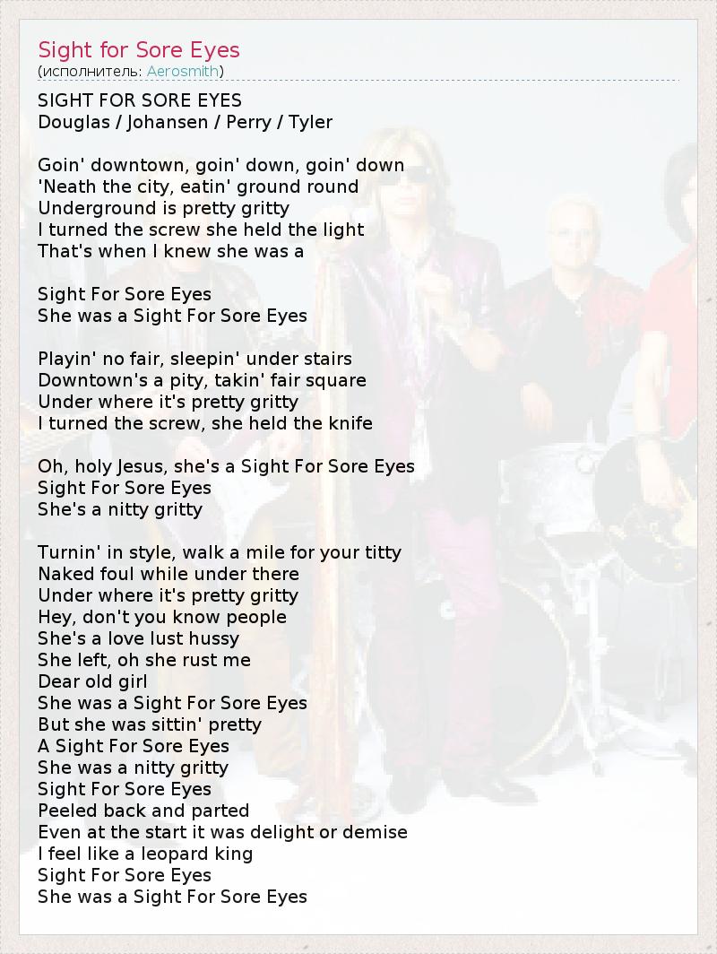 А как ты думаешь, о чем песня "Sight for Sore Eyes" ?