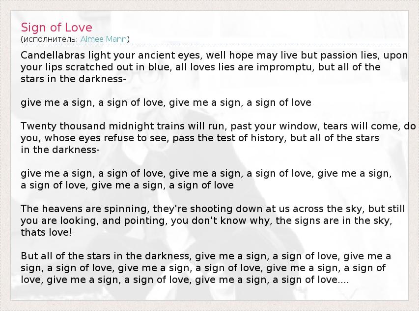 А как ты думаешь, о чем песня "Sign of Love" ?