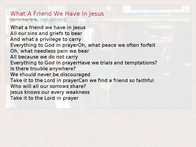 А как ты думаешь, о чем песня "What A Friend We Have In Jesus" ?