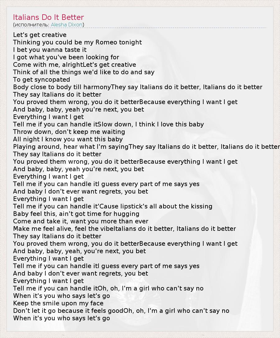 А как ты думаешь, о чем песня "Italians Do It Better" ?