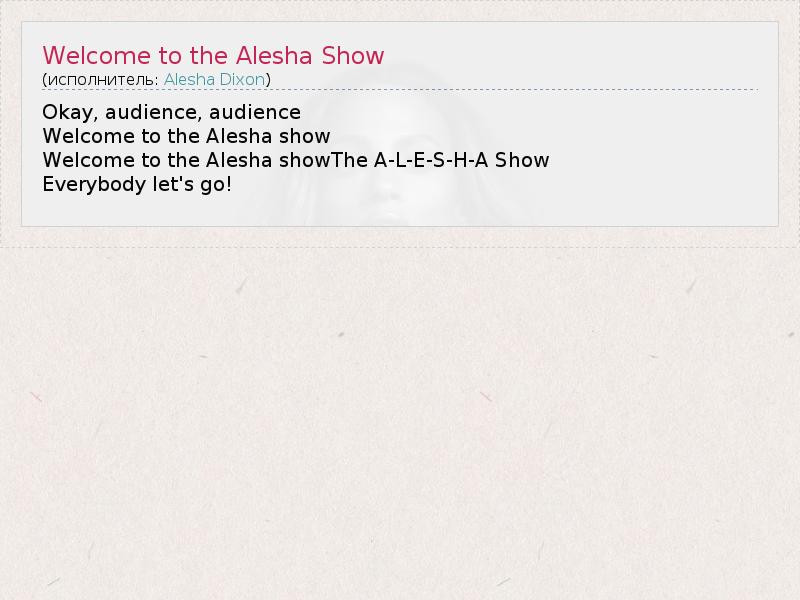 ГлавнаяИсполнителиAlesha DixonWelcome to the Alesha Show