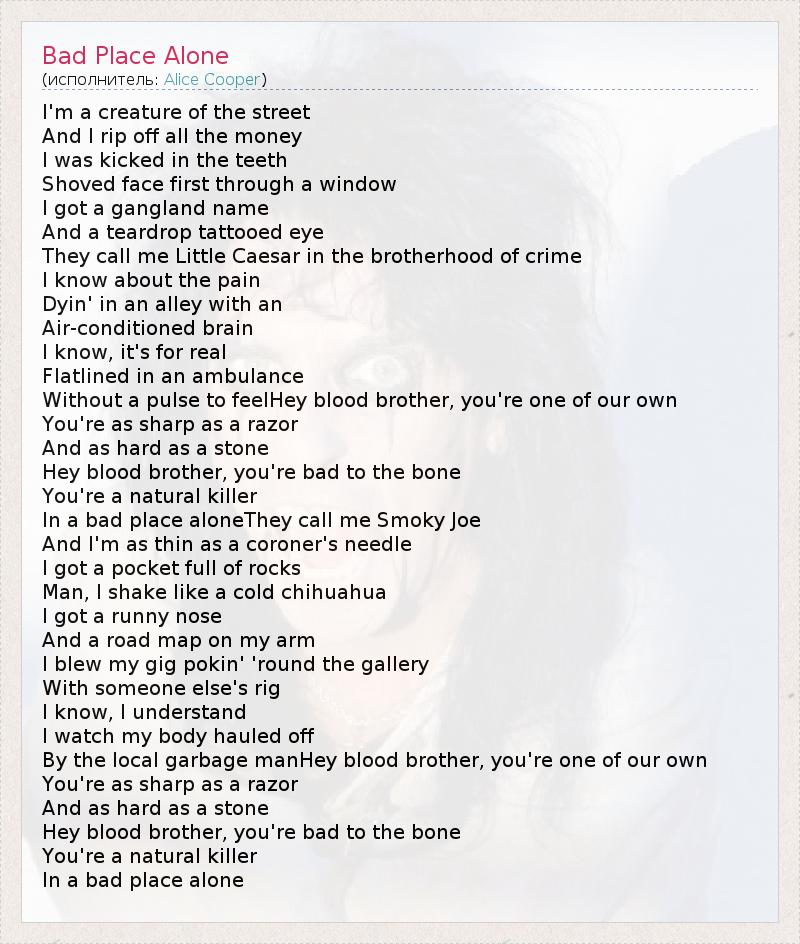 А как ты думаешь, о чем песня "Bad Place Alone" ?