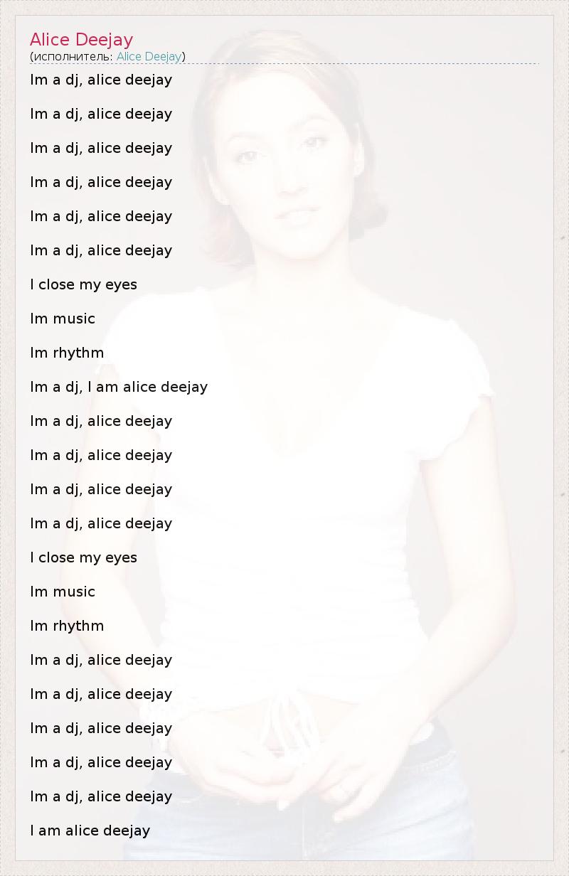 Im a dj, alice deejay Im a dj, alice deejay Im a dj, alice deejay Im a dj, alice deejay Im a dj, alice deejay Im a dj, alice deejay I close my eyes Im music Im rhythm Im a dj, I am alice deejay Im a dj, alice deejay Im a dj, alice deejay Im a dj, alice deejay Im a dj, alice deejay I close my eyes Im music Im rhythm Im a dj, alice deejay Im a dj, alice deejay Im a dj, alice deejay Im a dj, alice deejay Im a dj, alice deejay I am alice deejay