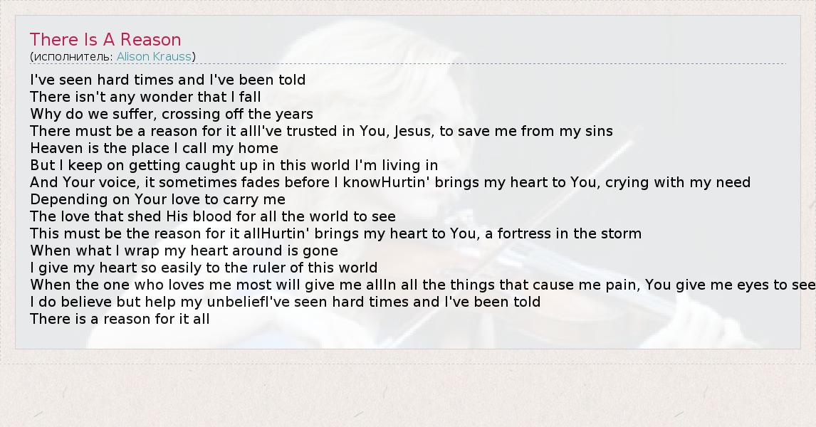 А как ты думаешь, о чем песня "There Is A Reason" ?