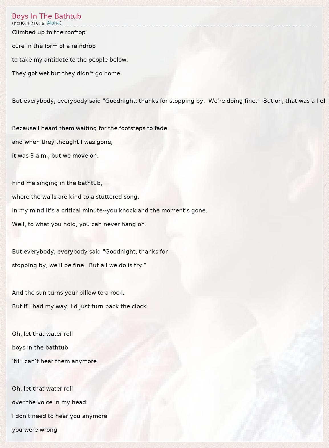 А как ты думаешь, о чем песня "Boys In The Bathtub" ?