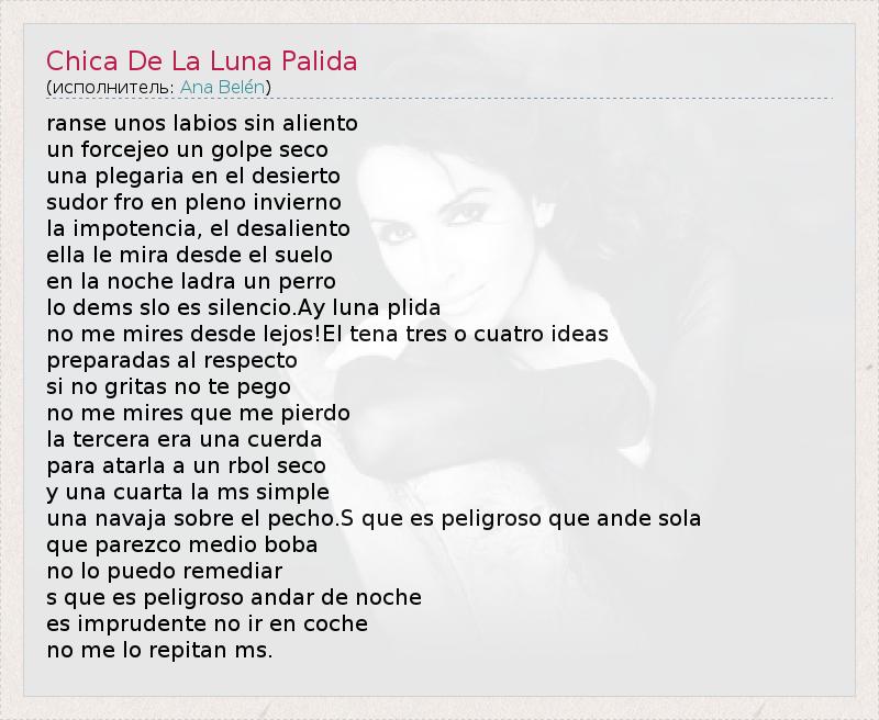 А как ты думаешь, о чем песня "Chica De La Luna Palida" ?