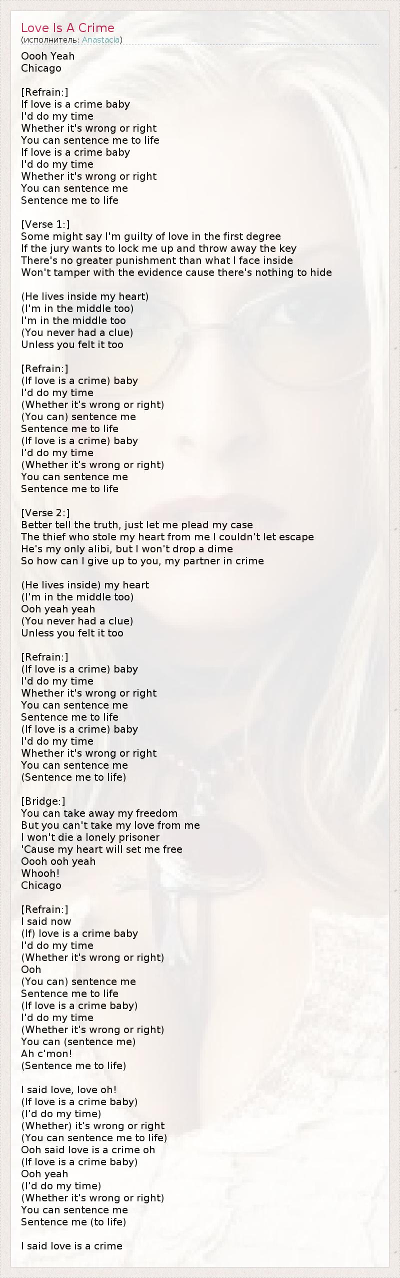 А как ты думаешь, о чем песня "Love Is A Crime" ?