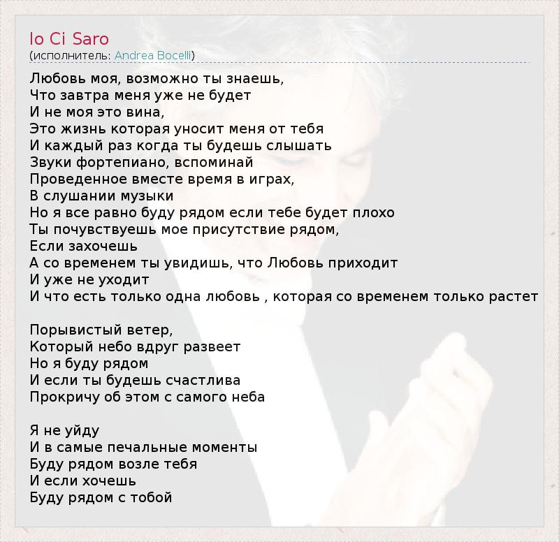 А как ты думаешь, о чем песня "Io Ci Saro" ?