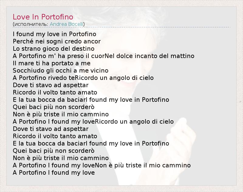 А как ты думаешь, о чем песня "Love In Portofino" ?