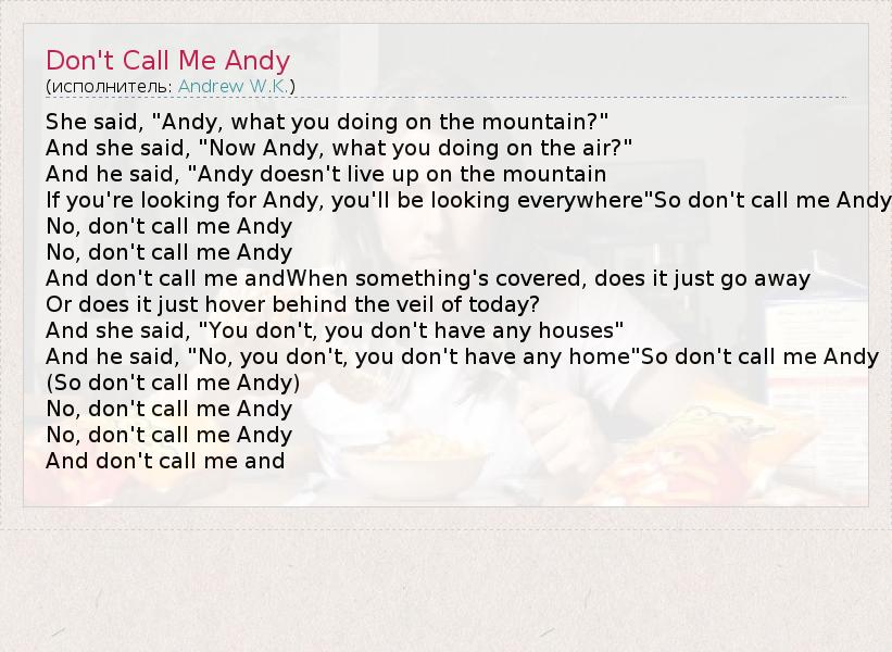 А как ты думаешь, о чем песня "Don't Call Me Andy" ?