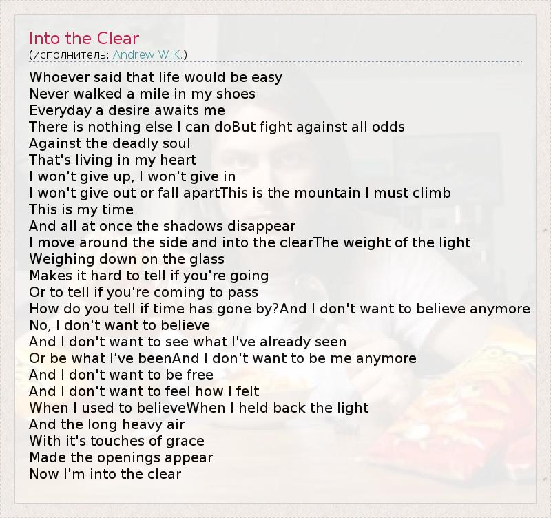 А как ты думаешь, о чем песня "Into the Clear" ?