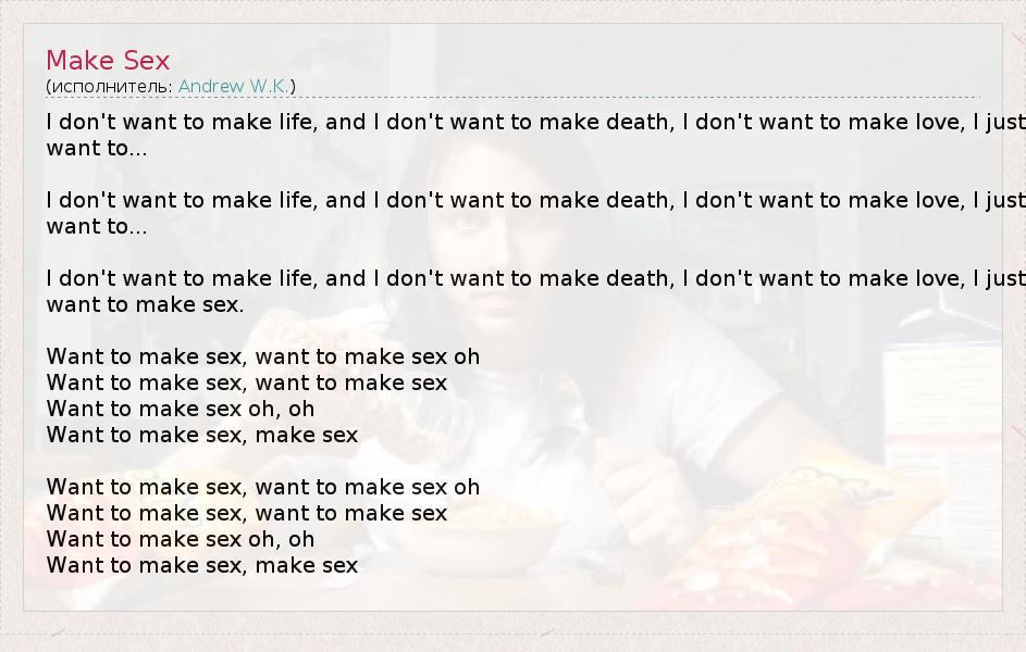 I don't want to make life, and I don't want to make death, I don't want to make love, I just