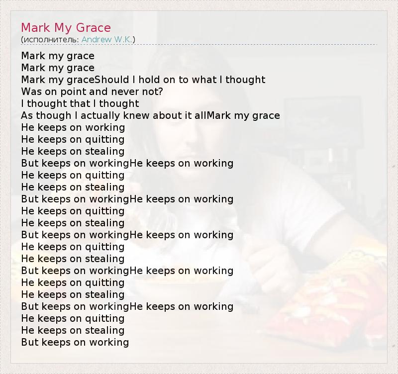 А как ты думаешь, о чем песня "Mark My Grace" ?
