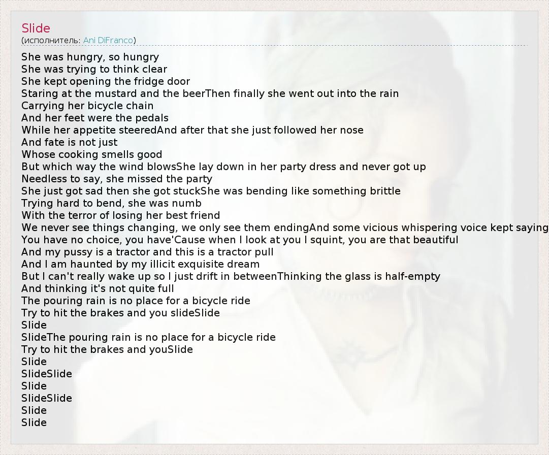Это интересно:США, г. Баффало (шт. Нью-Йорк)Ани Дифранко родилась 23 сентября 1970 года. К 19-ти годам сочинила более сотни песен. По просьбам друзей записала некоторые из них на аудиокассеты и размножила в количестве 500 экземпляров. Так родился лейбл Righteous Babe. В 1991 году, оседлав собственный «Фольксваген», Ани отправилась в импровизированный тур по стране и завоевала нешуточную популярность у «определенной... продолжение