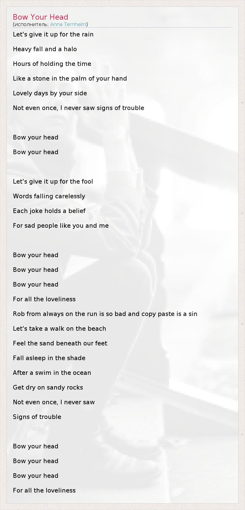 А как ты думаешь, о чем песня "Bow Your Head" ?