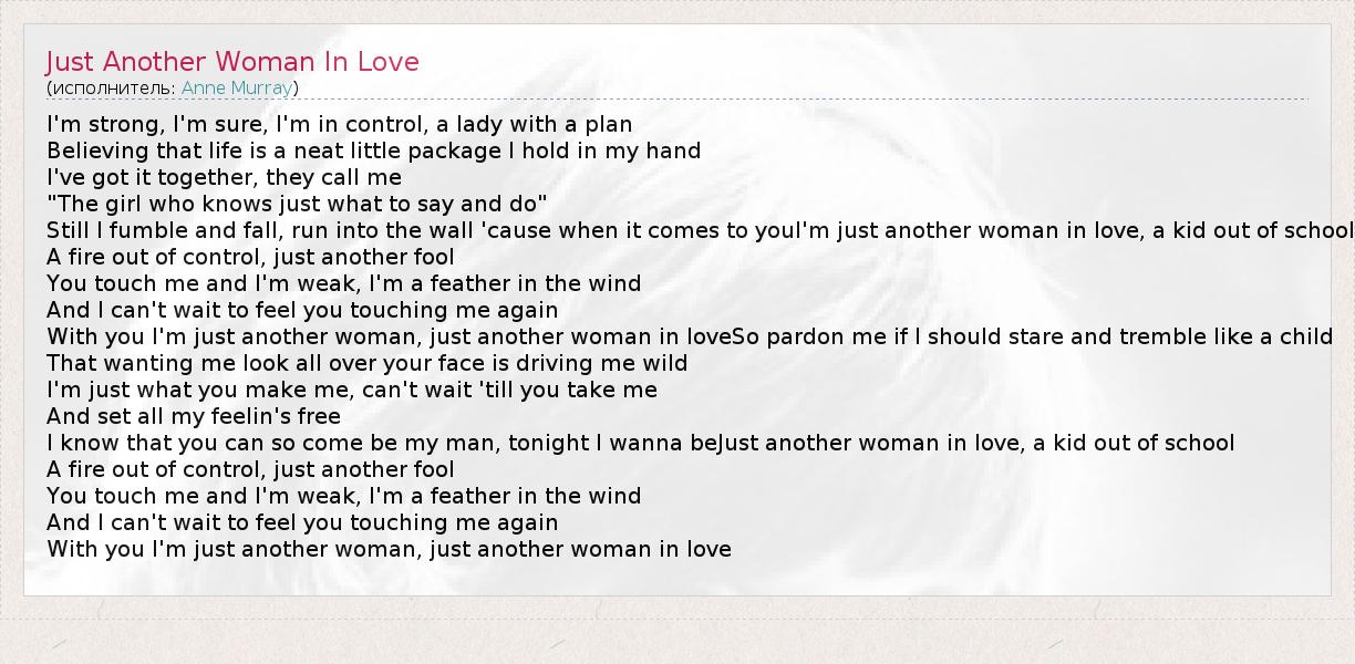 А как ты думаешь, о чем песня "Just Another Woman In Love" ?