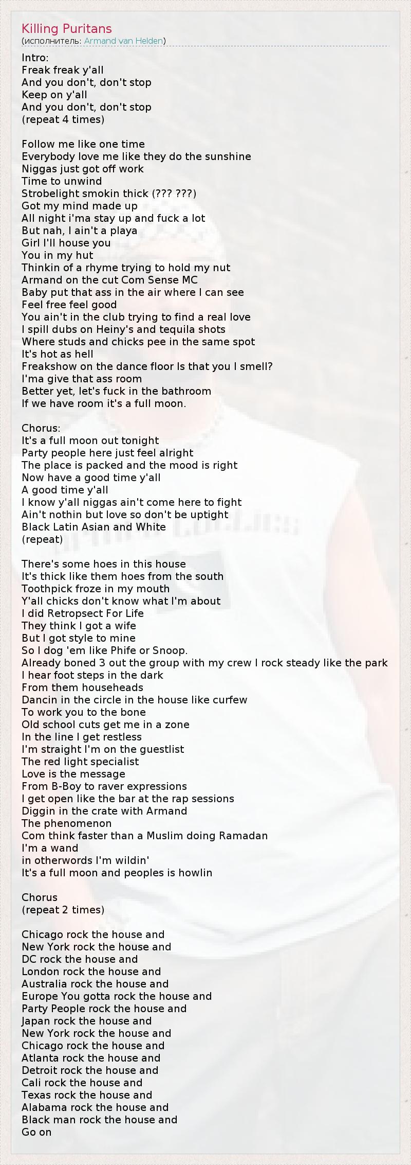 А как ты думаешь, о чем песня "Killing Puritans" ?