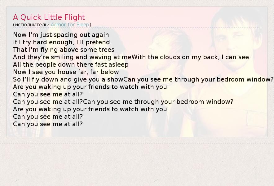 А как ты думаешь, о чем песня "A Quick Little Flight" ?