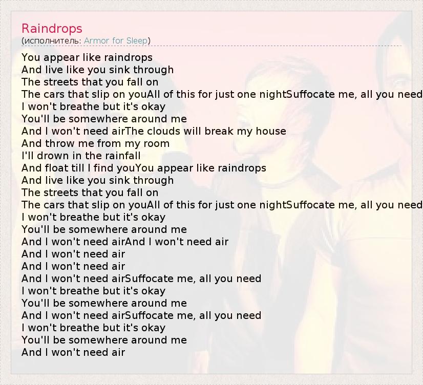 The cars that slip on youAll of this for just one nightSuffocate me, all you need